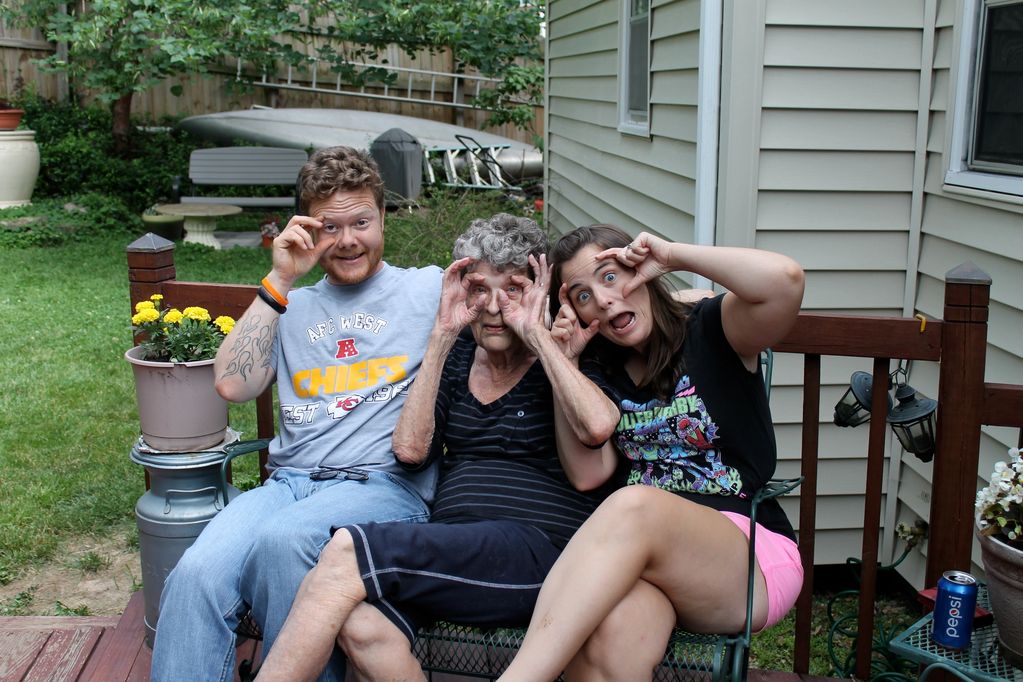 Vivian with two of her grandchildren. Vivian was a skilled carpenter who built the deck in this picture while in her 60s. She enjoyed spending time with family - the deck was home to many moments of celebration, conversations, and connection.